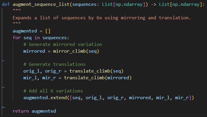 Granted, there was a big caveat with movesets: they only convey which moves are possible from a given position. They say nothing about how moves fit together into climbs. Still, my simplest model, the MLP, couldn’t make use of sequential data anyways, so I figured it wouldn’t hurt to give it some additional moves to train on.