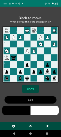 A chess training app in the vein of ChessPuzzle’s Puzzle Inception, my app would have the user guess the engine evaluation of a series of random chess positions. The user would gain or lose Elo based on their guess, and would be ranked on a public leaderboard. I also had ambitions of multiple modes, including multiplayer, but figured I would keep design simple up until an initial release and add more features if people seemed to like the original idea.